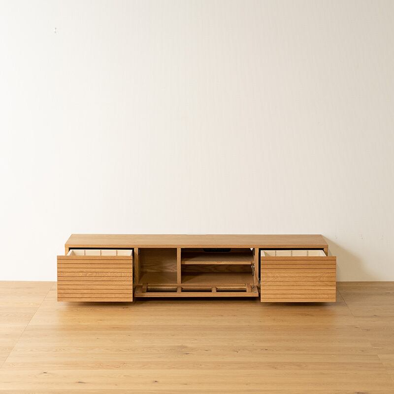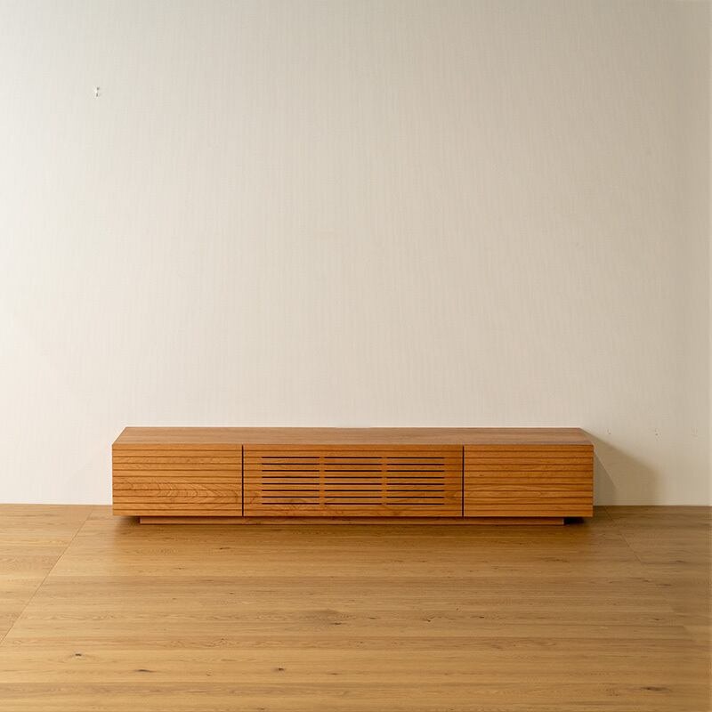 前板にスリット加工を加え、閉扉時でもリモコン操作ができるTVボードです。